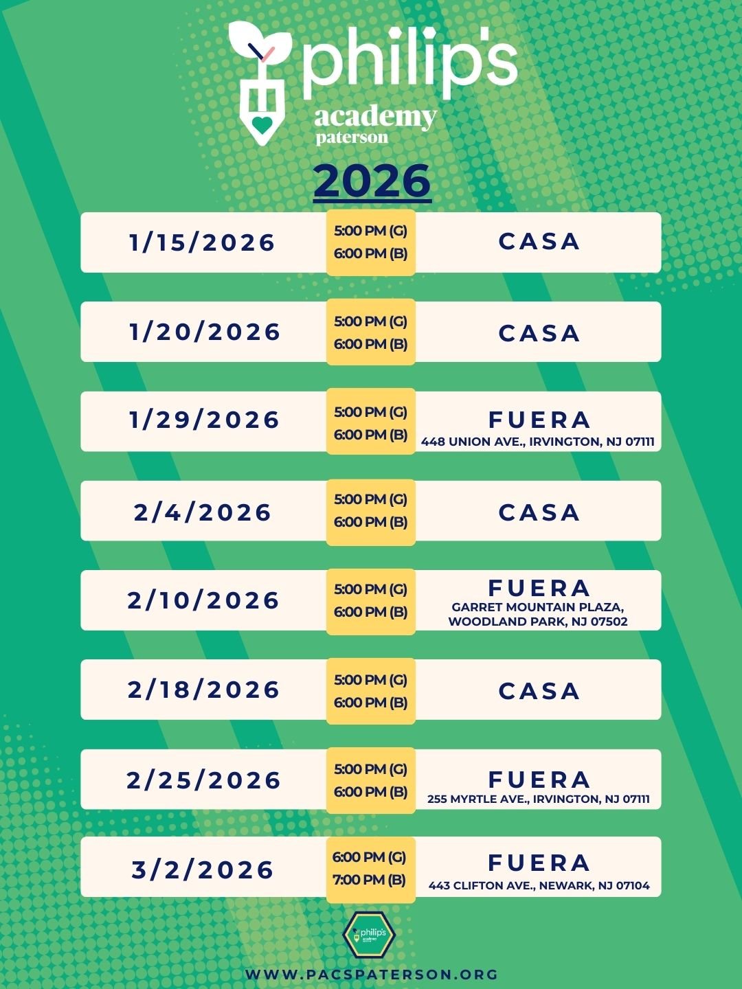 Please be advised that, due to current school policies, only individuals with students currently attending Philip's Academy Charter School of Paterson will be permitted to attend our home basketball games. We kindly ask for your understanding and cooperation in this matter as we prioritize the safety and well-being of our school community.